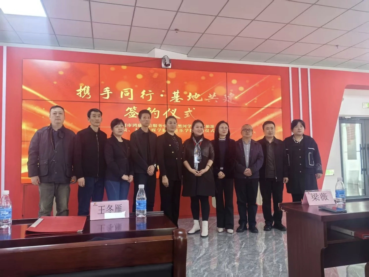 4月16日,人文传媒学院、文化旅游学院、音乐学院与黑河市鸿慈社会工作服务中心在黑河市党群服务中心举行了大学生志愿者实践基地签约仪式。党总支书记王冬雁与辅导员、学生代表共同参加活动。