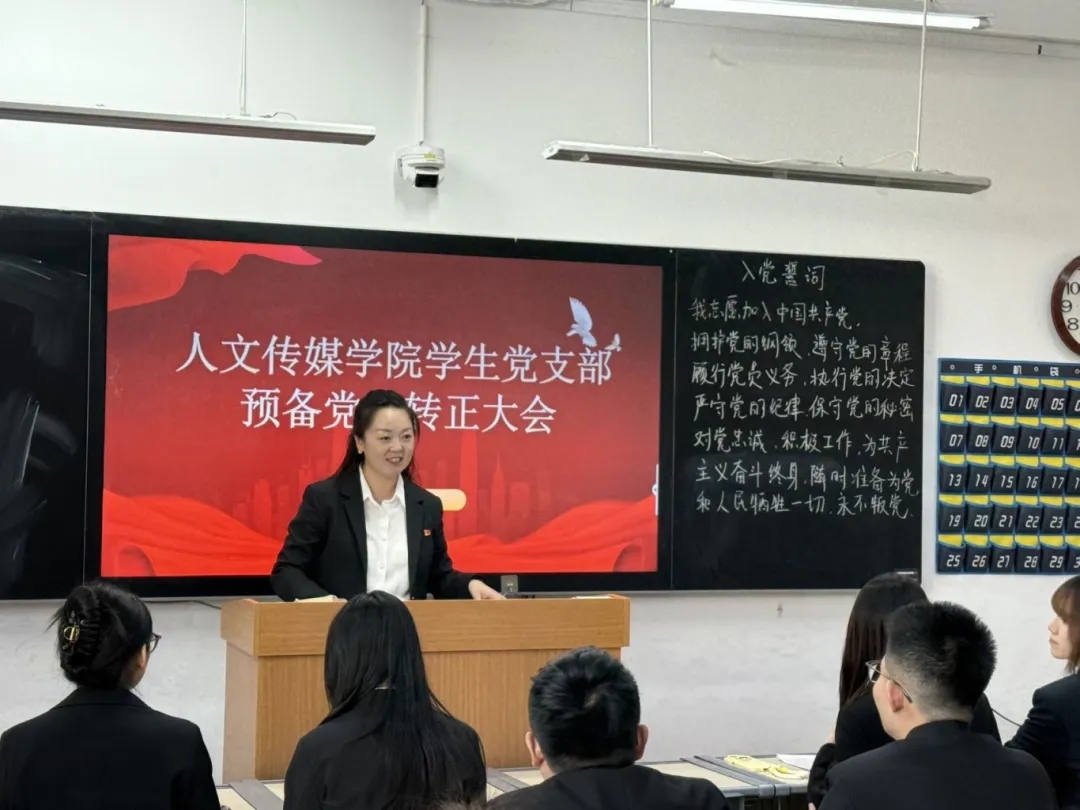 本次转正大会的顺利召开,不仅为人文传媒学院学生党支部注入了新的生机与活力,更是一次深刻的党性洗礼与思想动员。它激励着全体学生党员始终胸怀“国之大者”,自觉强化使命担当,以更加昂扬的斗志、更加坚定的信念、更加务实的作风,在新时代的青春赛道上奋力奔跑、奋勇争先,努力为实现中华民族伟大复兴的中国梦贡献属于自己的智慧和力量。