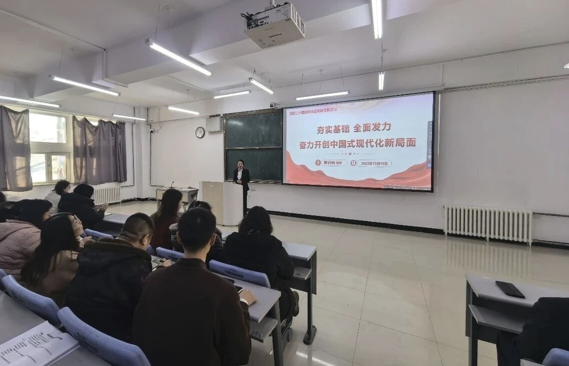 为深入学习宣传贯彻党的二十届四中全会精神,切实把全校师生的思想和行动统一到党中央决策部署上来,推动全会精神在北疆校园落地生根、开花结果,12月17日,人文传媒学院在求知楼B206举办专题辅导讲座。本次讲座特邀马克思主义学院张萌老师担任主讲,全院教师、学生党员及2024级入党积极分子参加学习。
