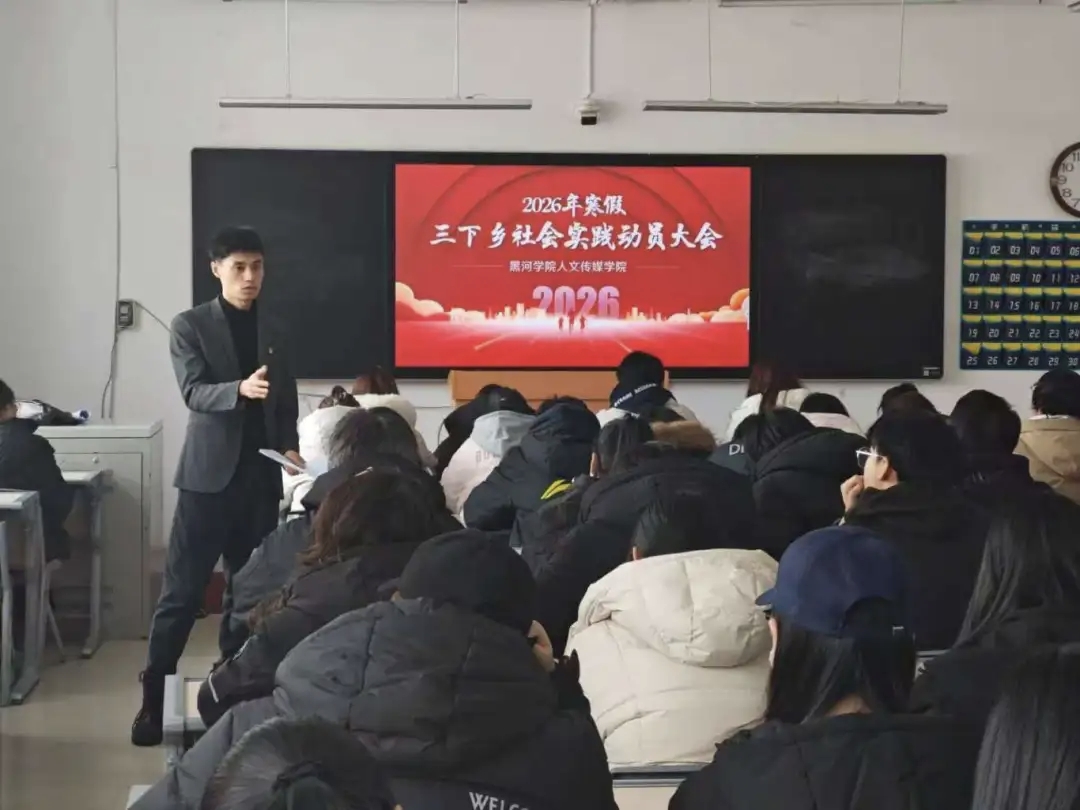 为引导青年学子在社会实践中受教育、长才干、作贡献,12月23日,我院在求知楼B203举行2026年寒假“三下乡”社会实践活动动员大会,2025级全体学生参加会议。