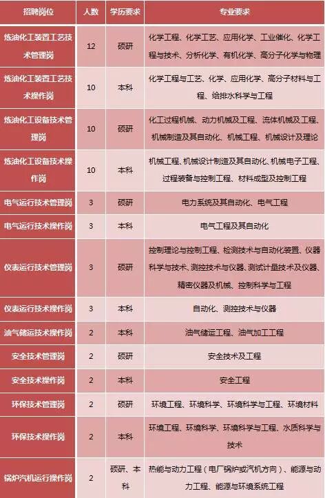 全国普通高等院校全日制统招统分应届毕业生,或具有教育部留学服务中心派遣资格的国(境)外留学回国(境)人员;遵纪守法、品行端正、团结协作,热爱石油石化事业;身体健康,能适应招聘单位岗位工作需要。