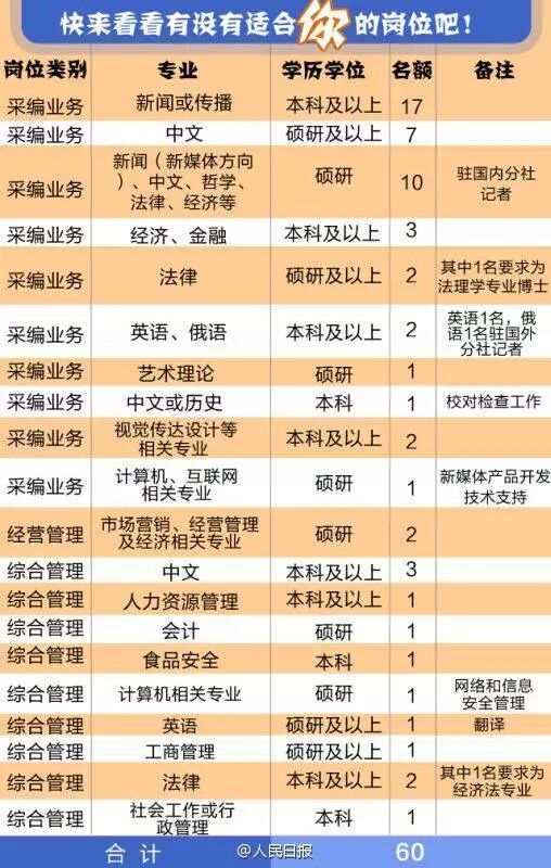 人民日报60个岗位正等待优秀的你
